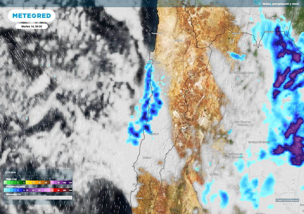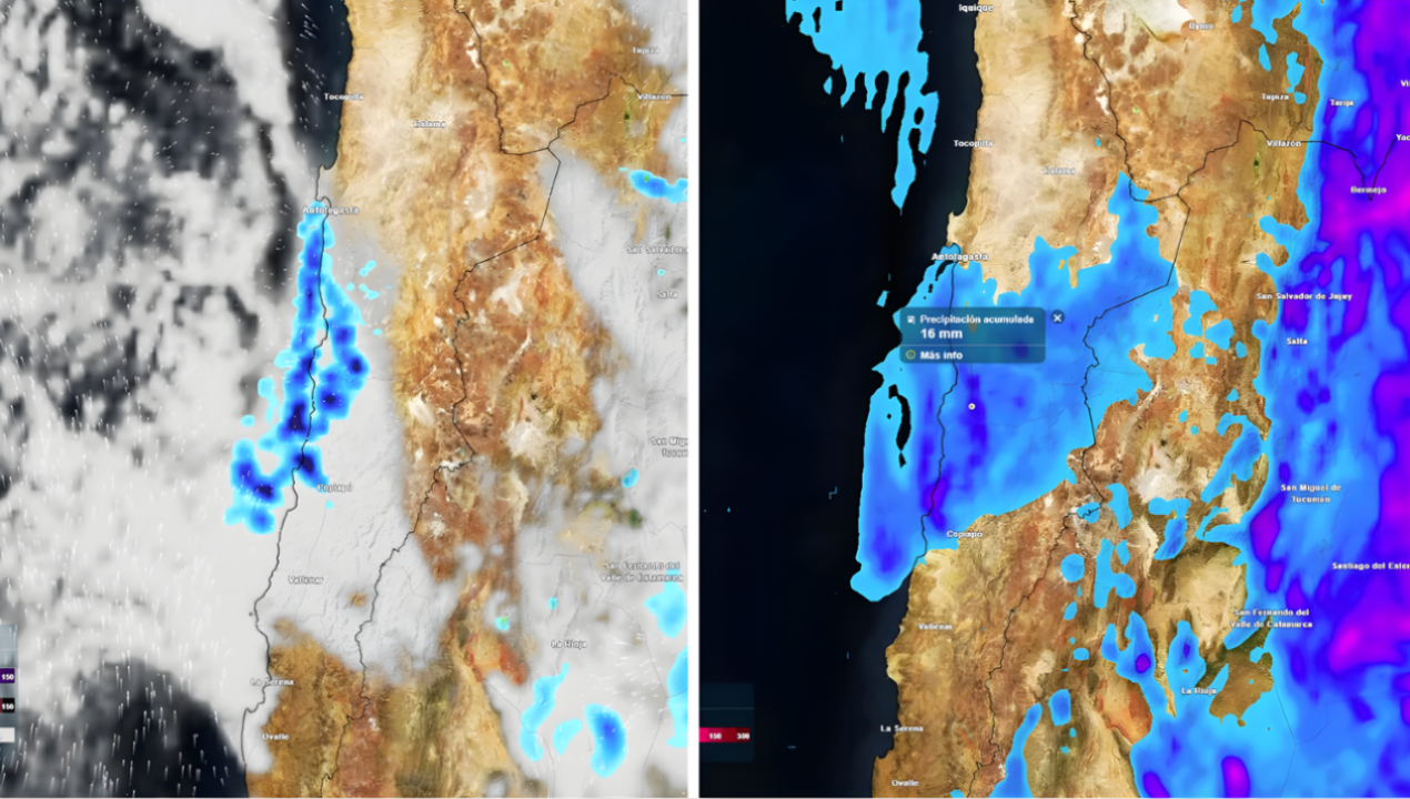 De acuerdo con los pronósticos, los chubascos comenzarán el lunes 13 en la costa de Antofagasta, Taltal, Chañaral y Caldera, intensificándose durante la madrugada del martes 14 y extendiéndose hacia sectores del interior de Región de Antofagsta y Atacama.