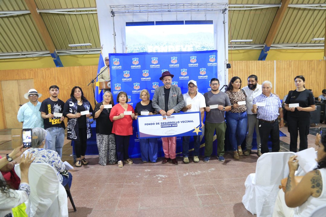 En un Salón Alicanto completamente lleno, la Municipalidad de Copiapó realizó la ceremonia de entrega de los cheques del Fondo de Desarrollo Vecinal (Fondeve) 2025, instancia en la que más de 200 organizaciones sociales de la comuna fueron beneficiadas con recursos para concretar iniciativas en sus territorios.
